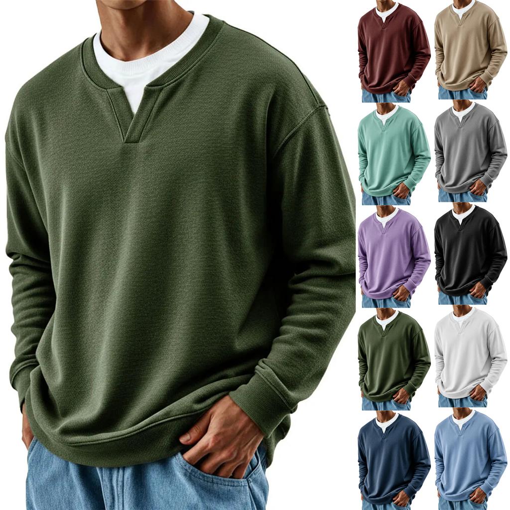 Мужская мода Однотонный Круглый вырез Длинный рукав Повседневная мода Универсальный Длинный рукав Свободная футболка Топ
