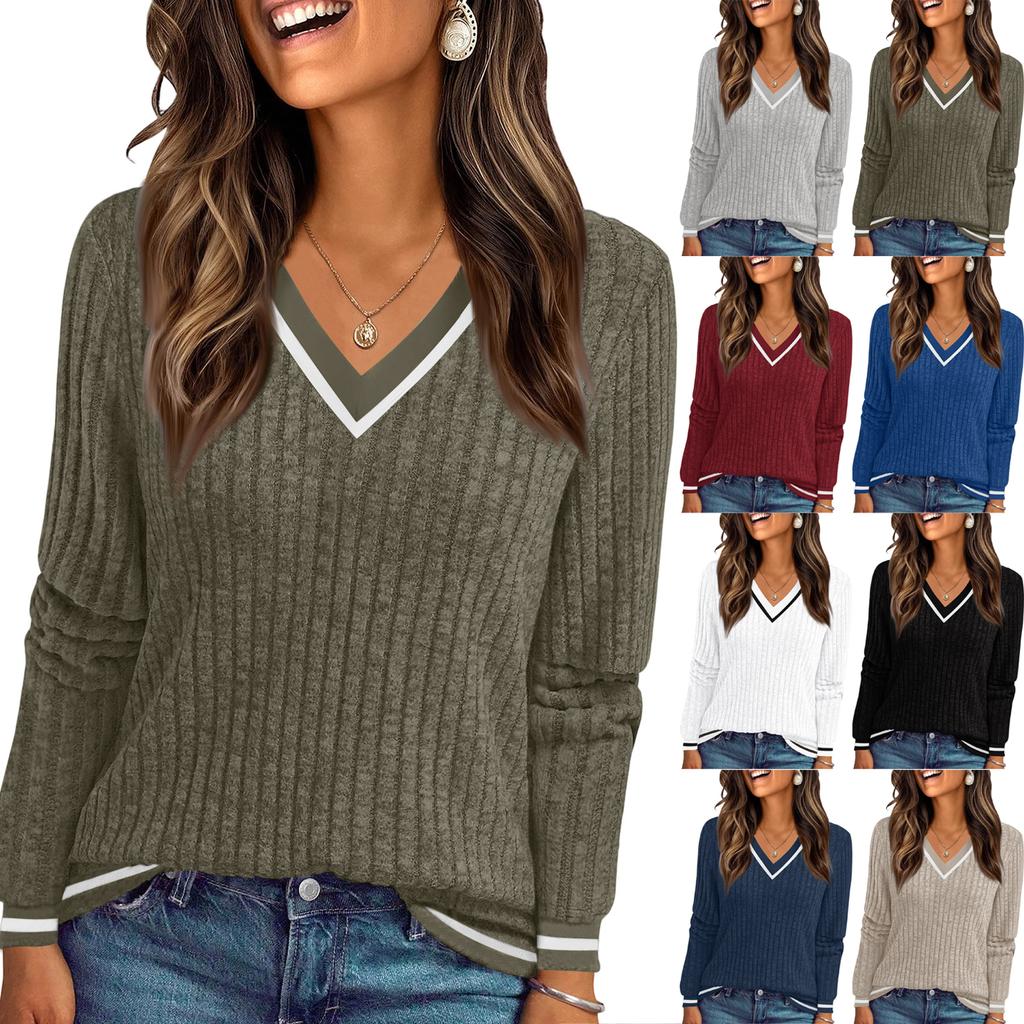 Женские свитера с длинным рукавом и V-образным вырезом, осенние мягкие легкие вязаные приталенные топы