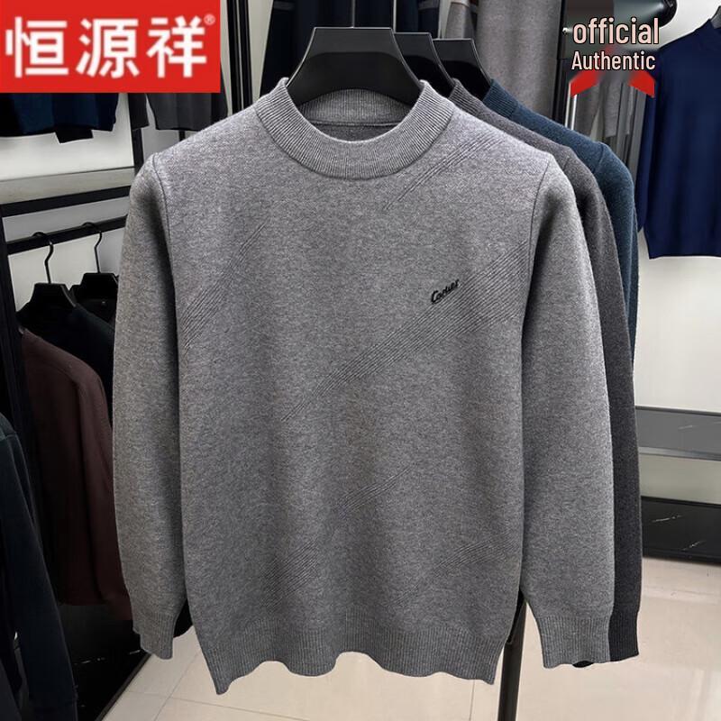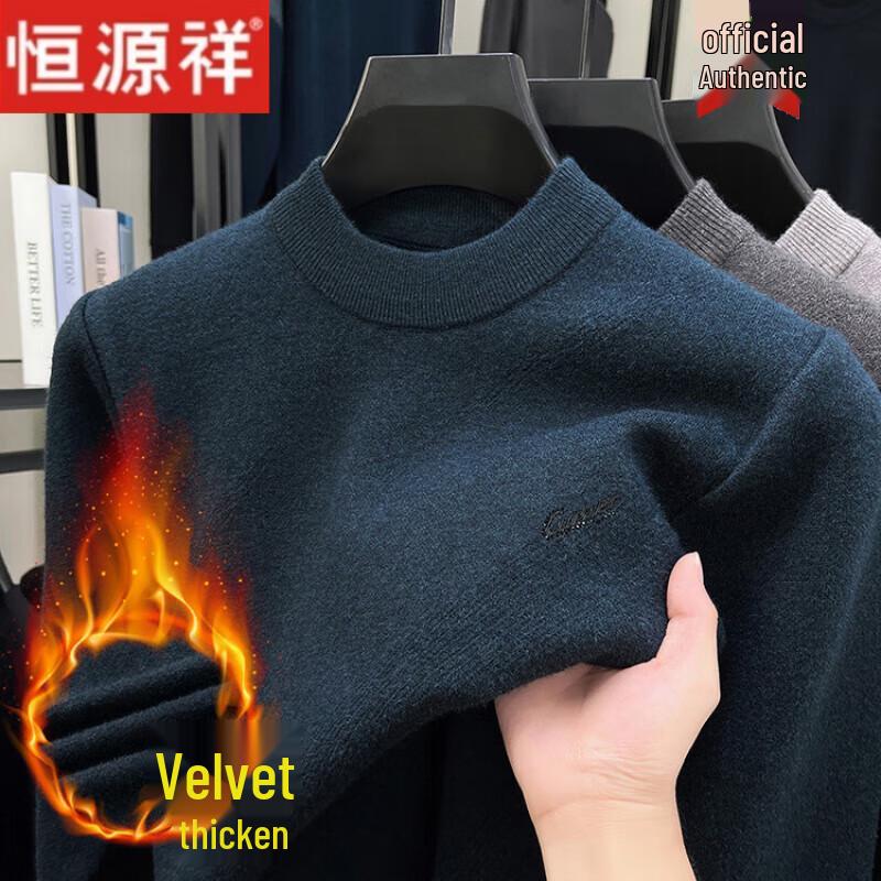 Hengyuanxiang Men's Thermal Fleece Round Neck Knit Sweater