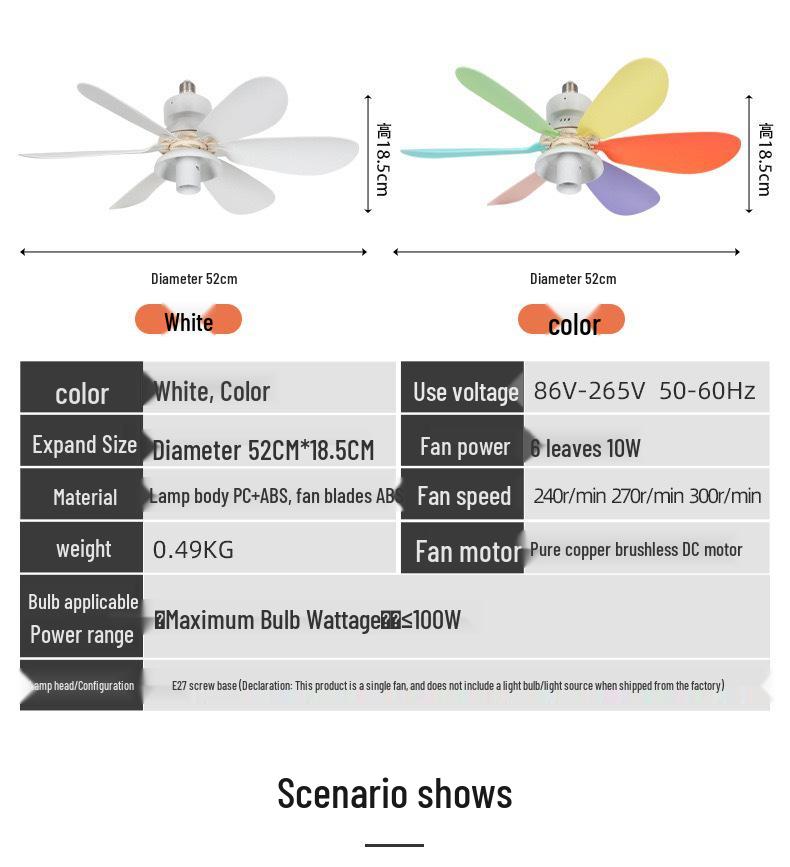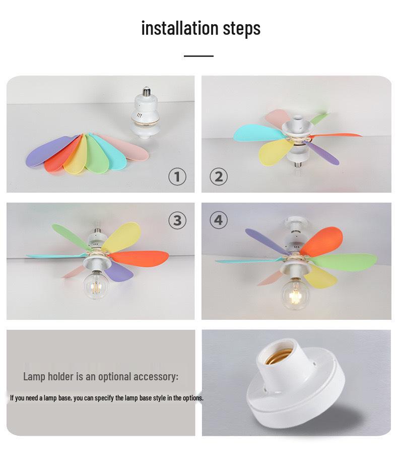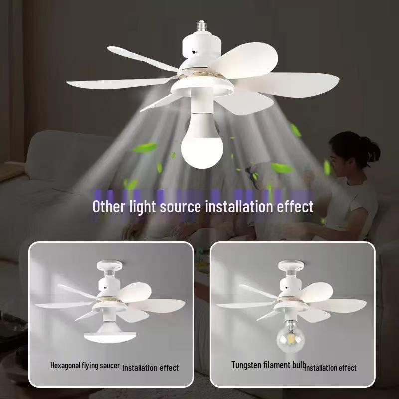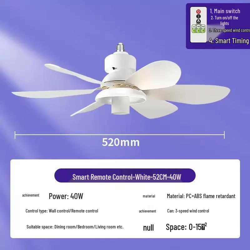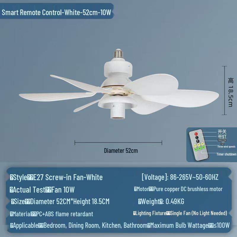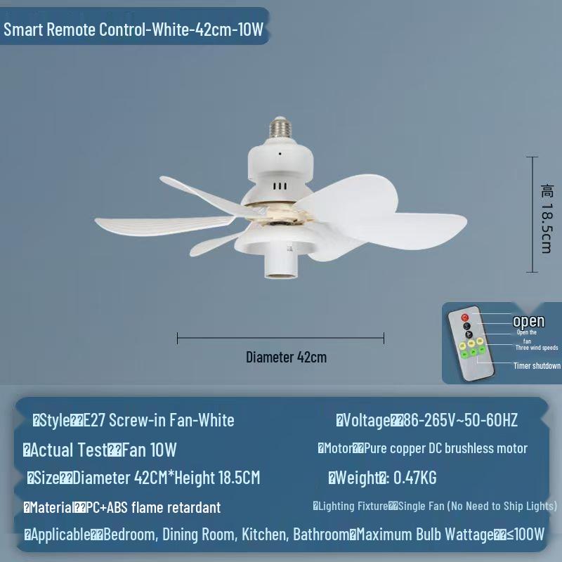 Silent Stepless Dimming Ceiling Fan Light with Remote Control, Strong Wind, E27 Base Bulb.