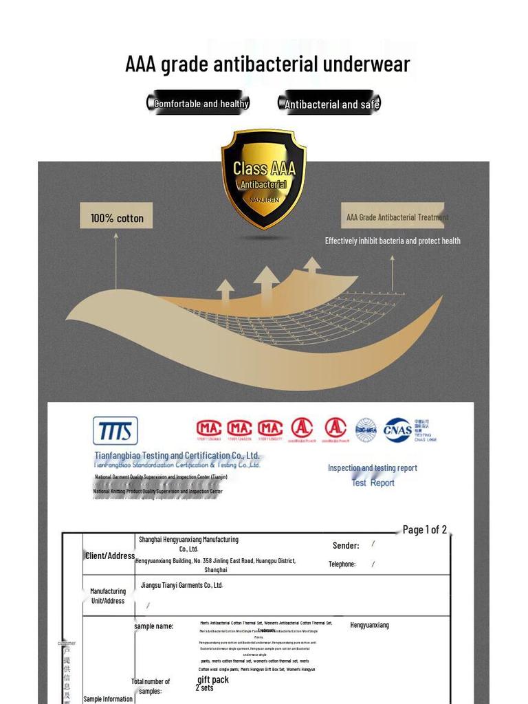Комплект мужского термобелья из чистого хлопка Hengyuanxiang