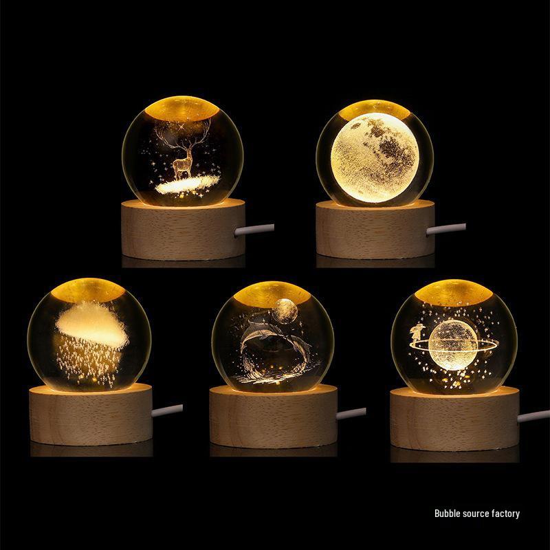 Внутренне выгравированный светящийся хрустальный шар ночник: Теплое настольное украшение с множеством узоров — купить товар онлайн с бесплатной доставкой по всему миру!