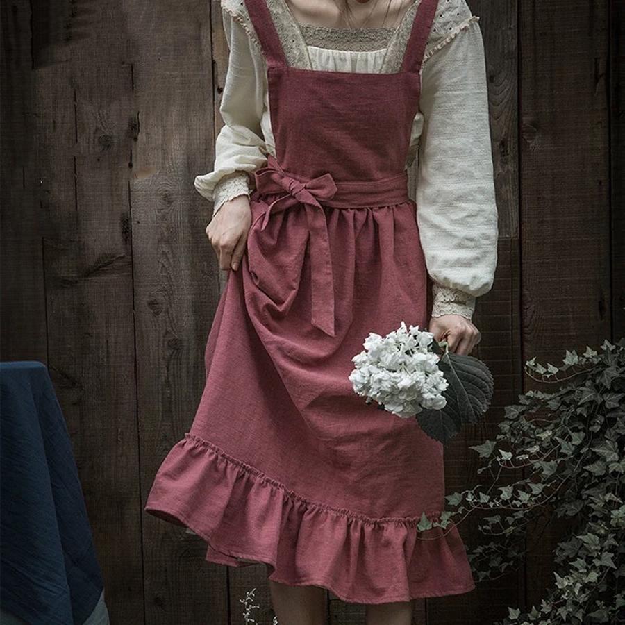 Волнистый сарафан Французский пасторальный Флорист Артистичный Хлопково-льняной Винтажный Фартук Кухня Выпечка Скандинавский Однотонный Фартук с оборками