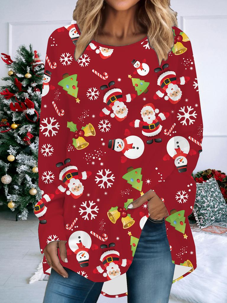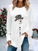 Женская футболка больших размеров с принтом на весну и Рождество, удобная, с длинным рукавом и круглым вырезом, повседневная, свободного кроя, средней длины, топы
