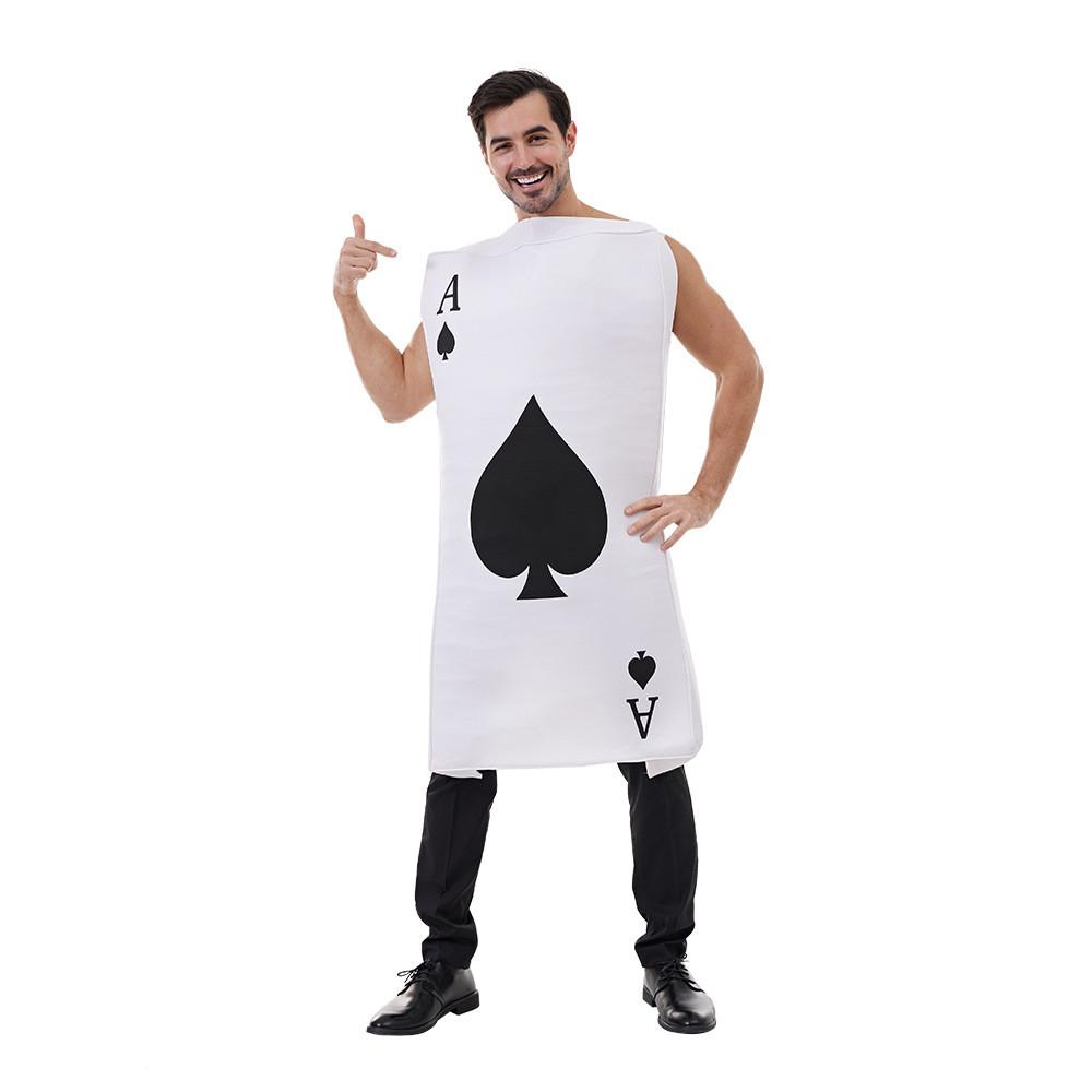Этот оригинальный комбинезон на Хэллоуин имеет игривый дизайн, вдохновленный игральными картами, и подходит для сценических выступлений и тематических вечеринок.. Изготовлено из ткани из полиэфирной смеси, подходит большинству взрослых в возрасте 18-24 лет. Костюм включает взаимосвязанные карточные мотивы в черных пиковом и бубновом дизайне, идеально подходящие для косплея или праздничных мероприятий.. Легко поддерживать, протирать влажной тканью для продолжения использования.