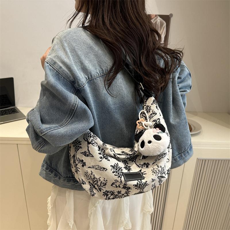 Bags Women's Portable Underarm Casual Pillow Bag 2025 New Autumn Denim Bag Bow Embroidery Bag