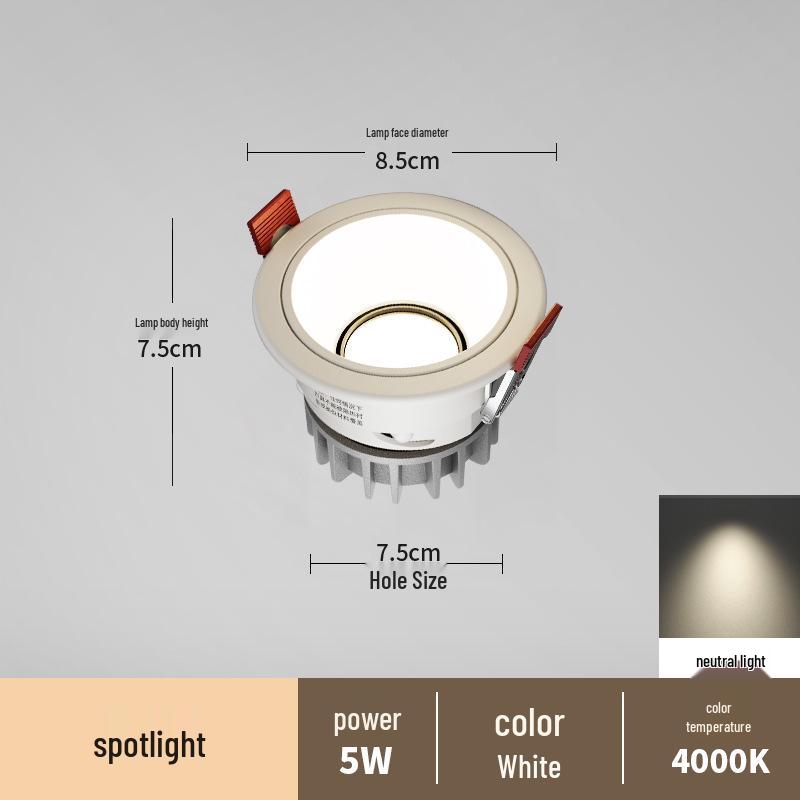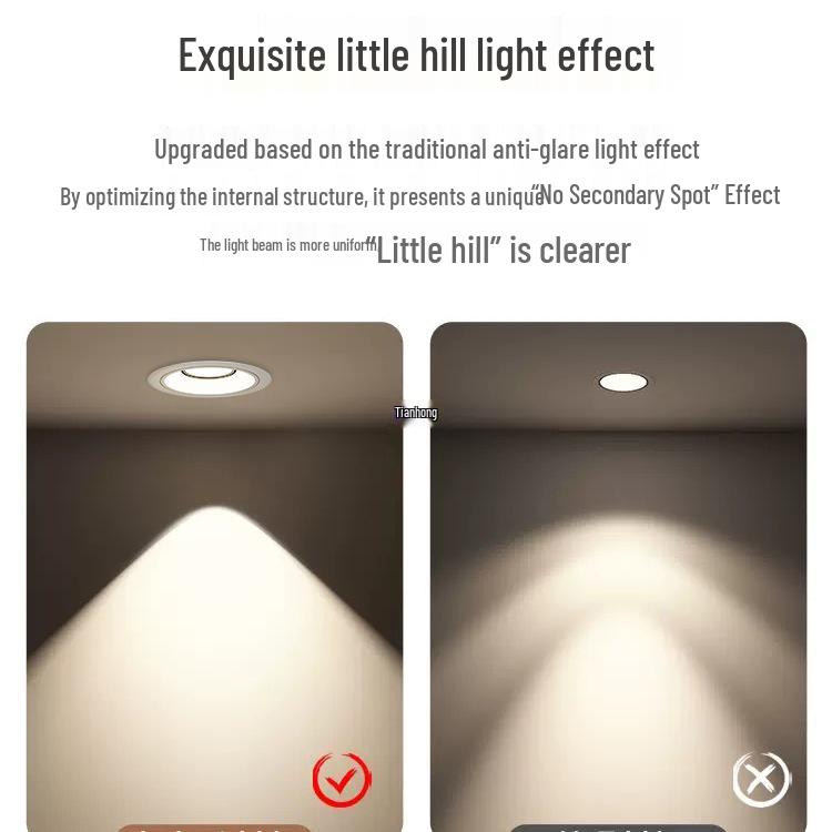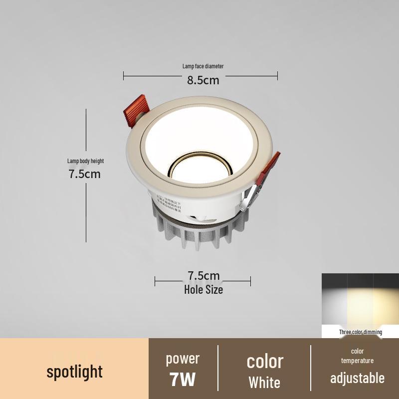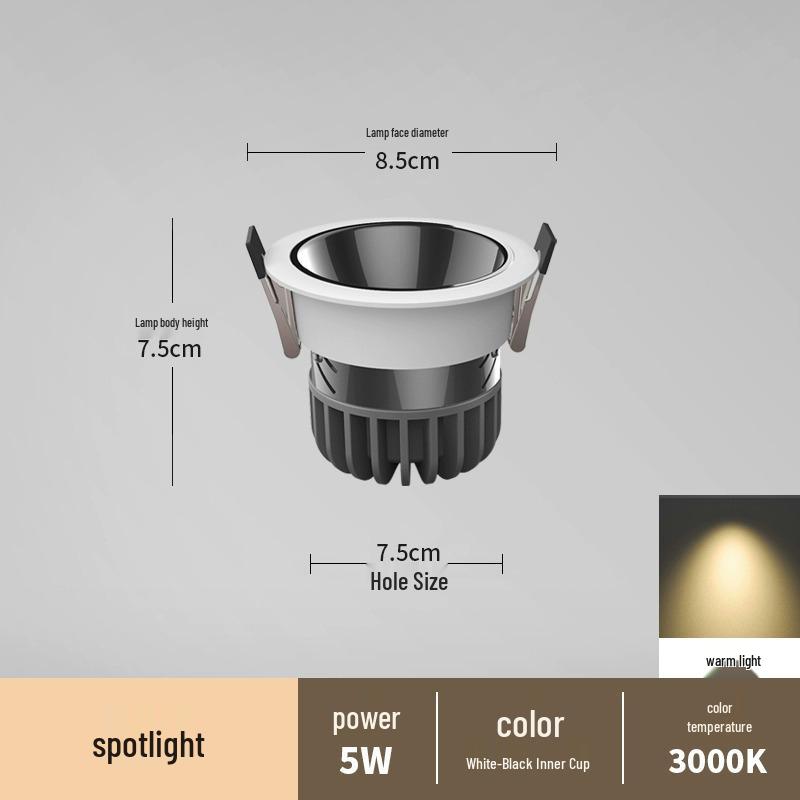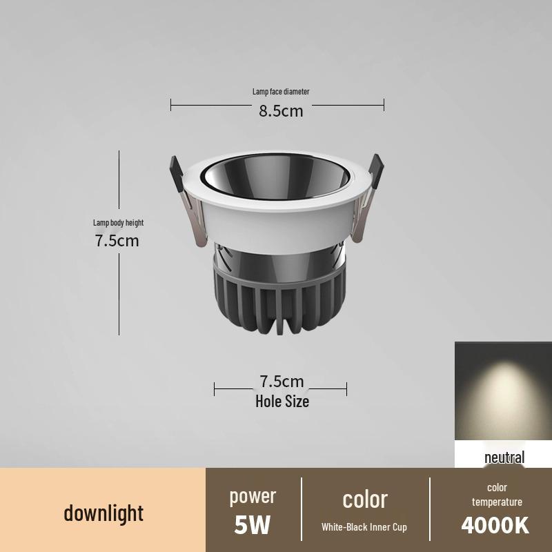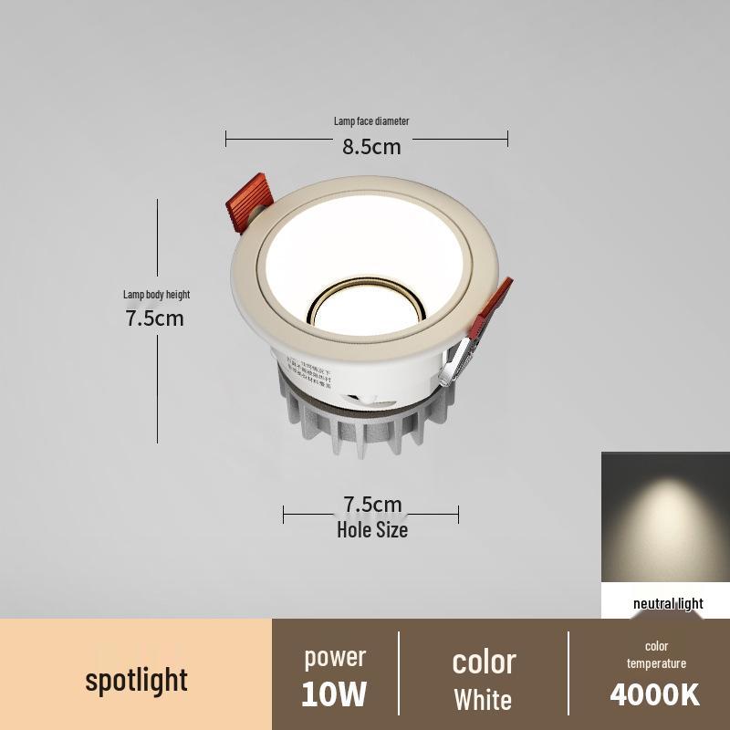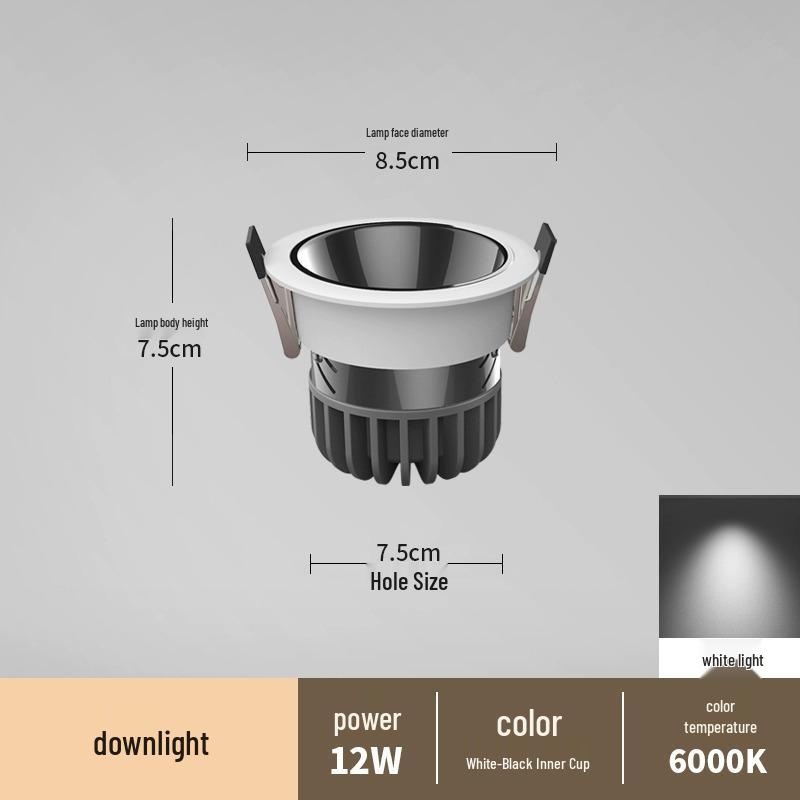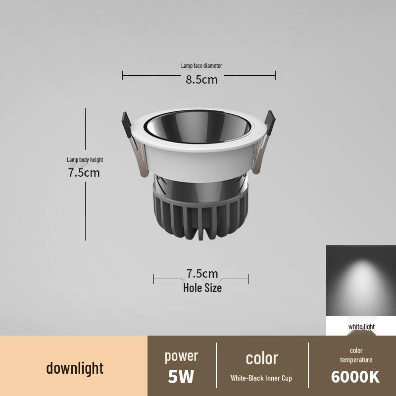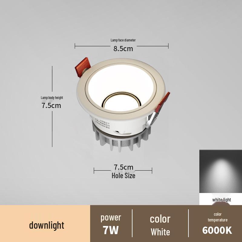 Антибликовый встраиваемый точечный светильник без рамки для гостиных и коридоров