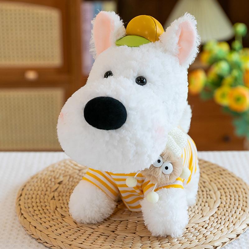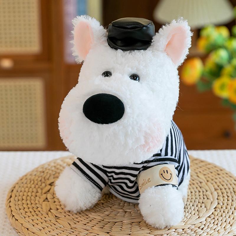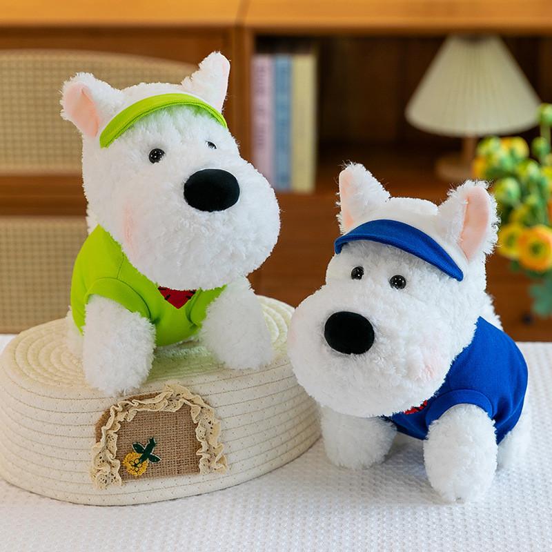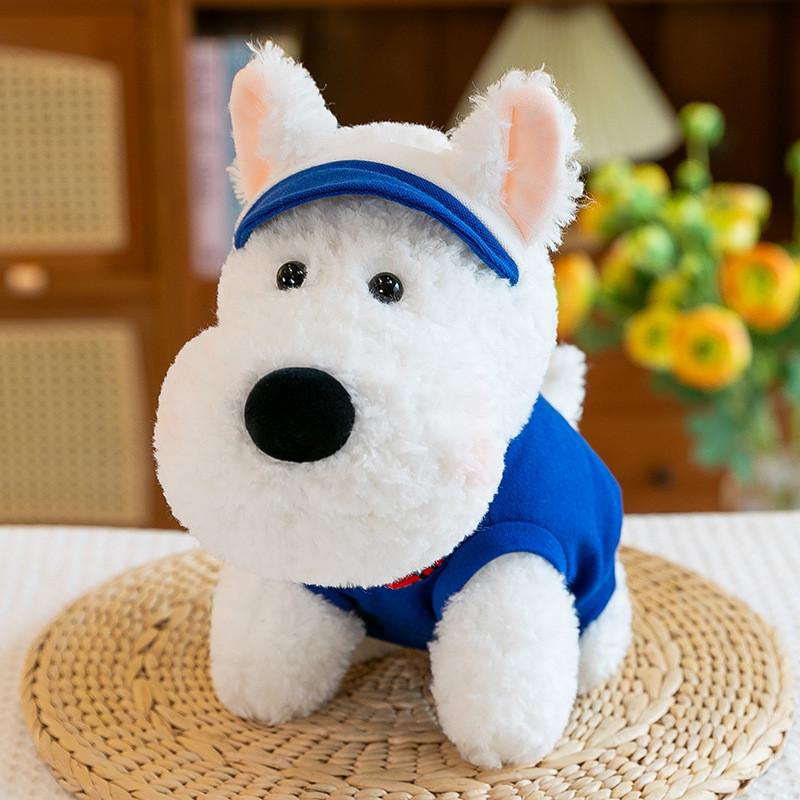 Плюшевая игрушка Вест-хайленд-терьер — это очаровательный и приятный на ощупь компаньон, созданный дарить комфорт и радость.. Эта 23-сантиметровая мягкая игрушка, изготовленная из высококачественного плюша, отличается реалистичным дизайном, передающим сущность игривого вест-хайленд-уайт-терьера.. Доступный в различных стилях, включая синие очки, серые глаза и полосатые узоры, он предлагает универсальный выбор для любителей собак.. Прочная ткань и плюшевый наполнитель обеспечивают долговечную мягкость, что делает его идеальным для обнимания или демонстрации.