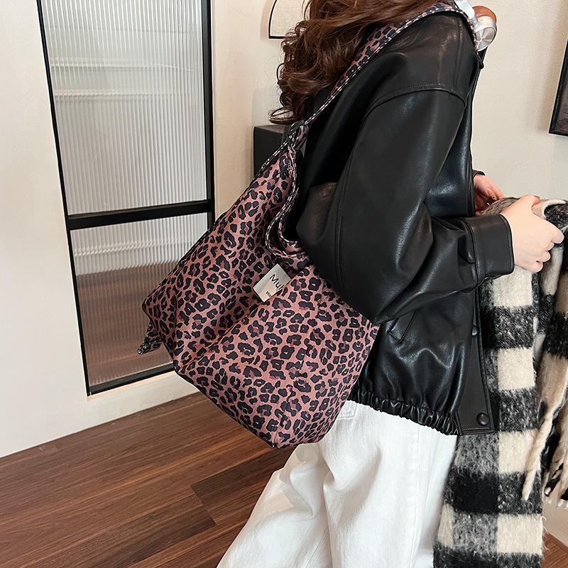 Леопардовый принт 2025 новая осенне-зимняя повседневная сумка-тоут популярного стиля, большой вместимости, на одно плечо, модный тренд, подмышечная женская сумка