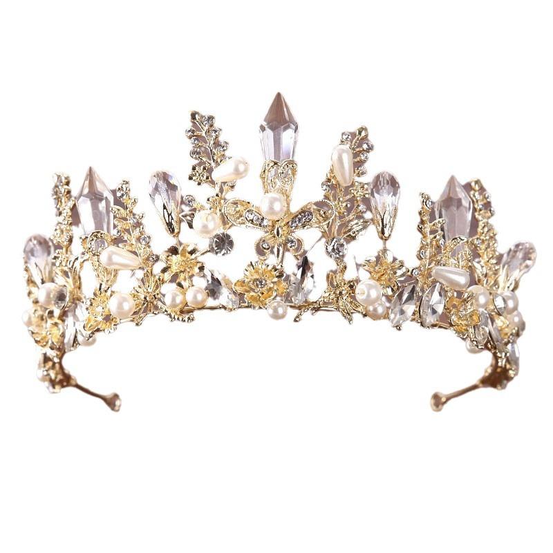 Свадебная корона головной убор Роскошная барочная золотая корона Кристальный лес Жемчужная повязка Аксессуары для свадебного платья Аксессуары для волос