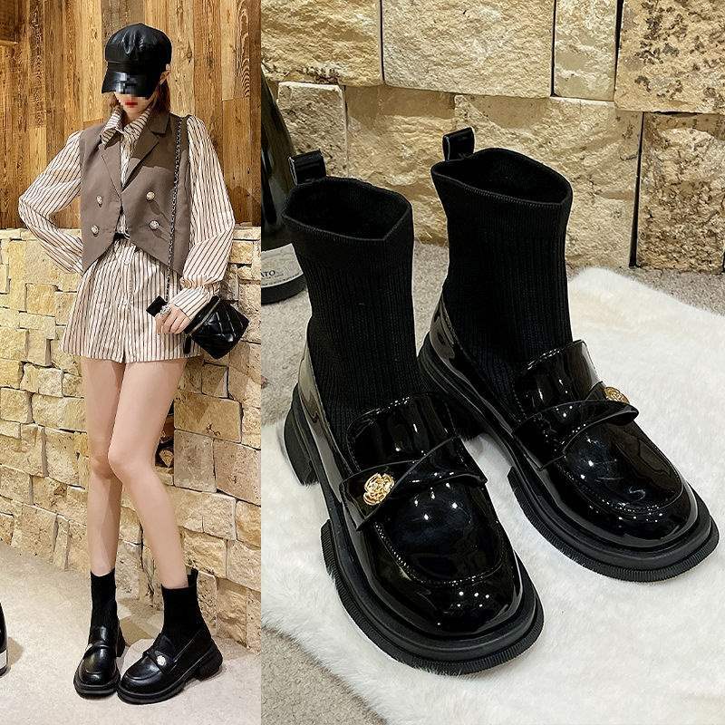 Ботинки Мартина детские 2025 популярный зарубежный стиль маленькие короткие ботинки платформа носки ботинки тонкие маленькие ботильоны осень и зима бархат