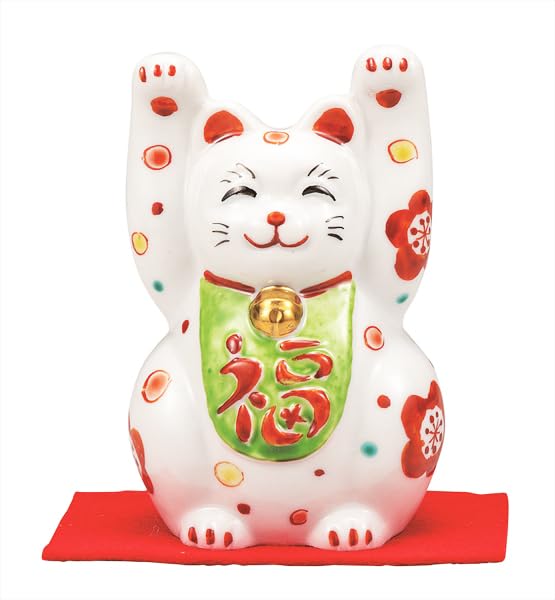 Фарфор Кутани Иватая 3 Манеки-неко с двумя лапами и цветочным дизайном №. (с ковром) K9-1522