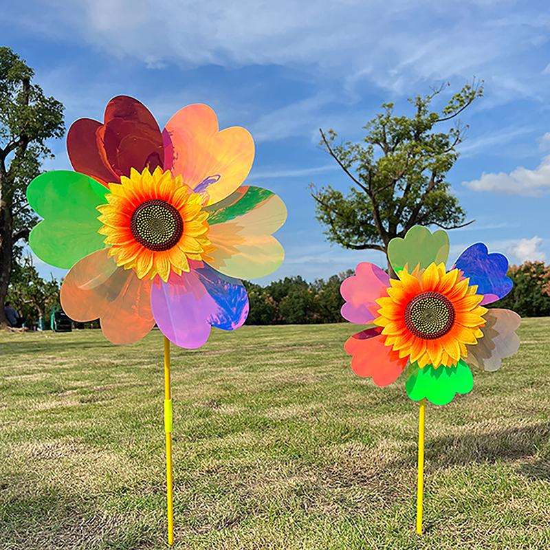 1 Set Outdoor Garden Decor Double Layered Sunflower Windmill Rotating Sunflower Wind Spinner Stake Standing Lawn Flower Pinwheel