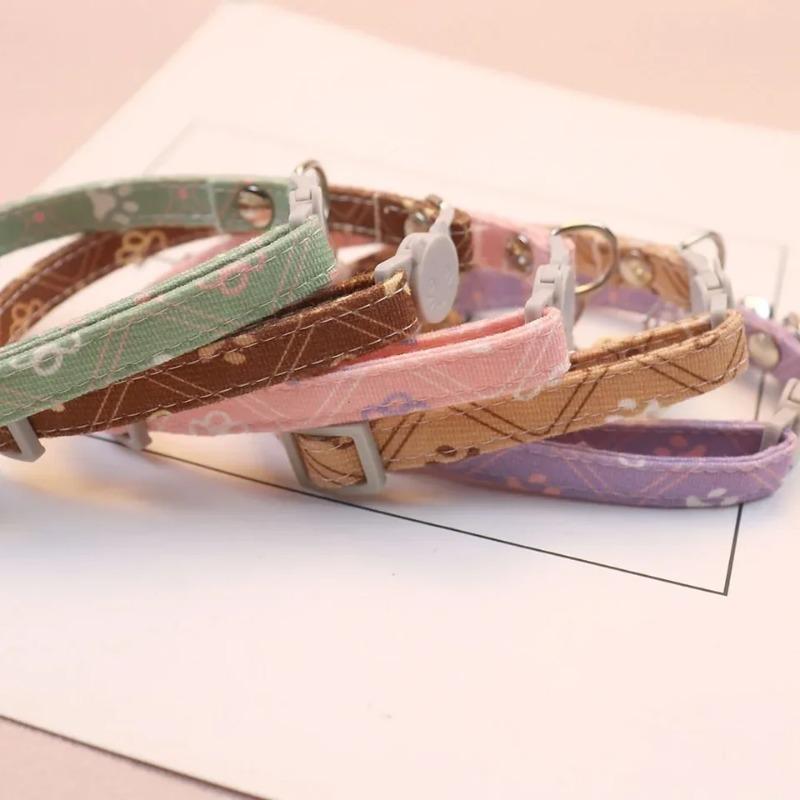 Adjustable Cute Footprint Breakaway Cat Collar with Bell for Small Dogs Puppies Kittens Stylish Neck Accessory Pet Supplies
