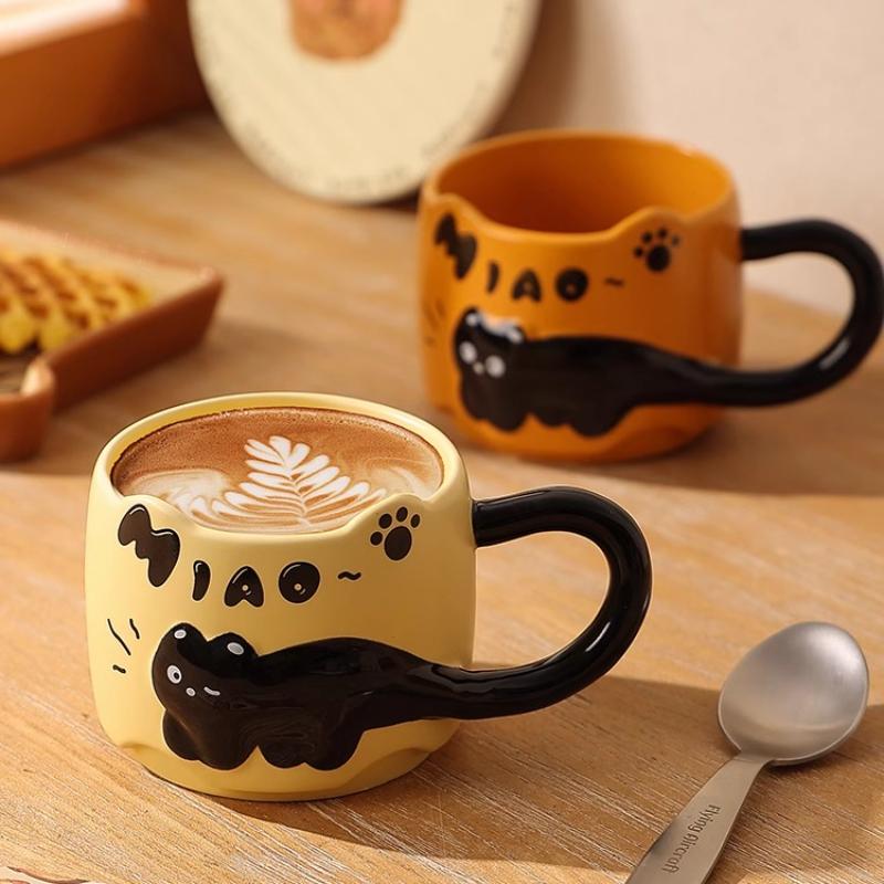 Рельефная кружка с котенком, кружка для девочки высокой ценности, милая и креативная чашка для воды для пары, керамическая офисная кофейная кружка
