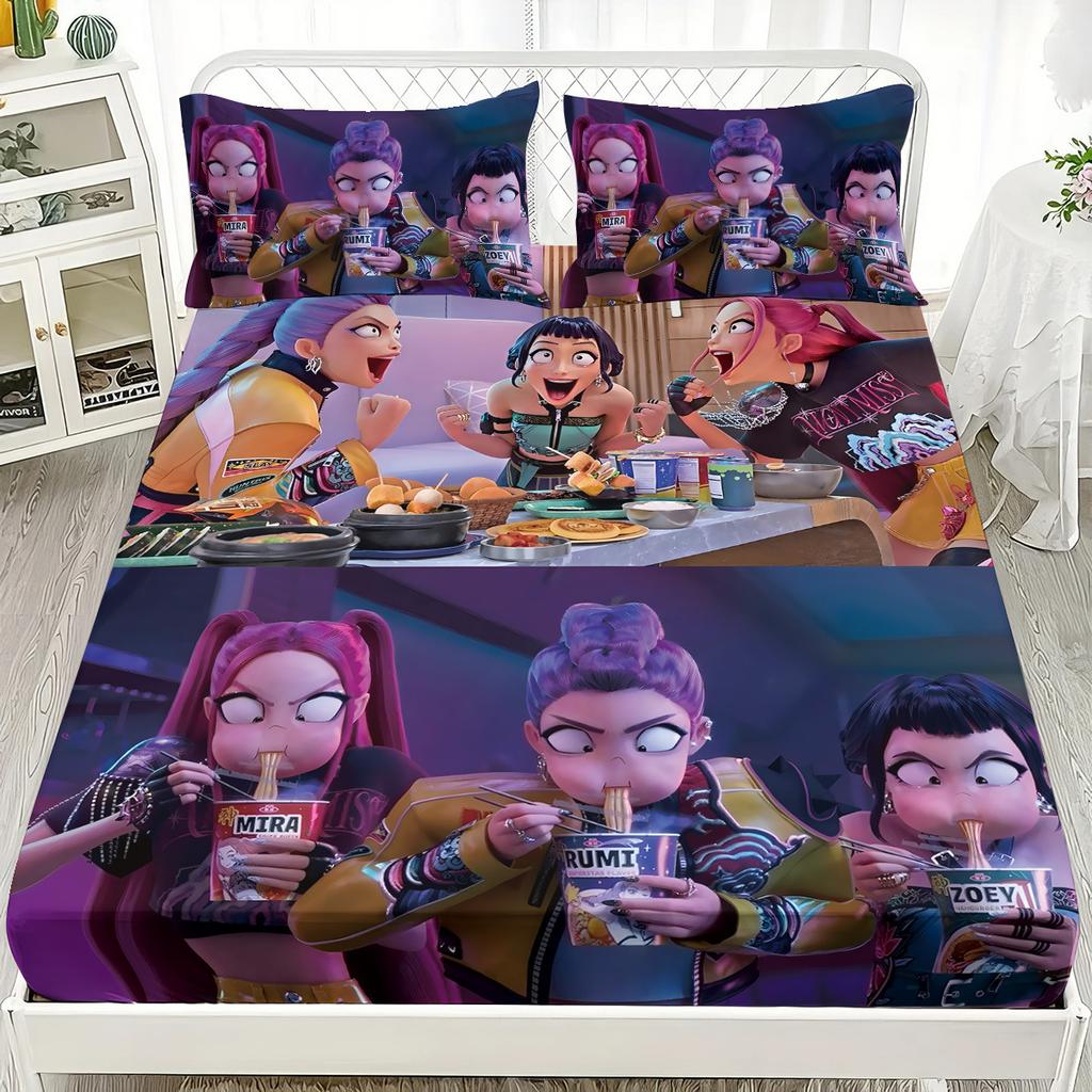 K-Pop D-Demon Hunters Натяжная простыня с 2 наволочками, с глубоким карманом, для домашнего декора, персонализированное покрывало