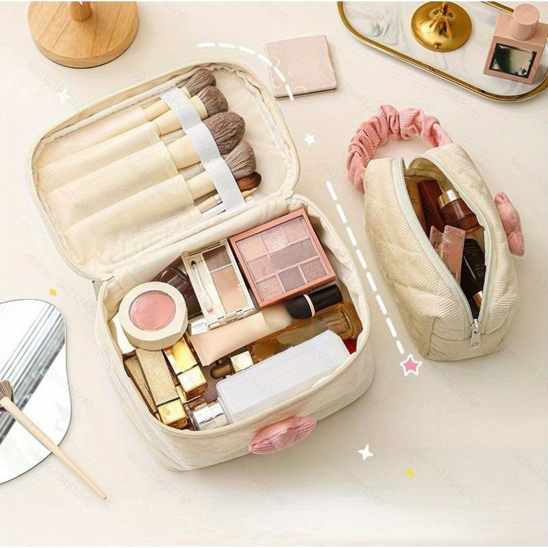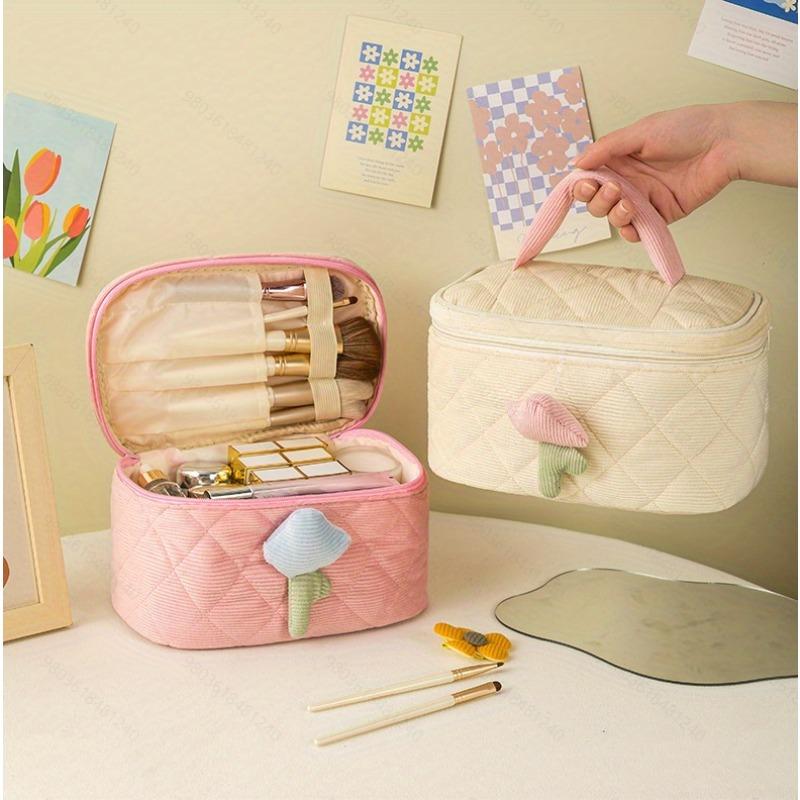 1pc Fashion Women's Tulip Flowers Pouch Large Capacity Travel Cosmetic Bag Corduroy Portable Storage Make Up Organizer