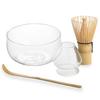 Glass Tea Bowl Matcha Glass Matcha Ceremony Tea Chawan Chasen and 500ml Tea Scoop Set, Double-Walled Bowl, Double-Layered Bowl, Utensils, Bowl, (Tea