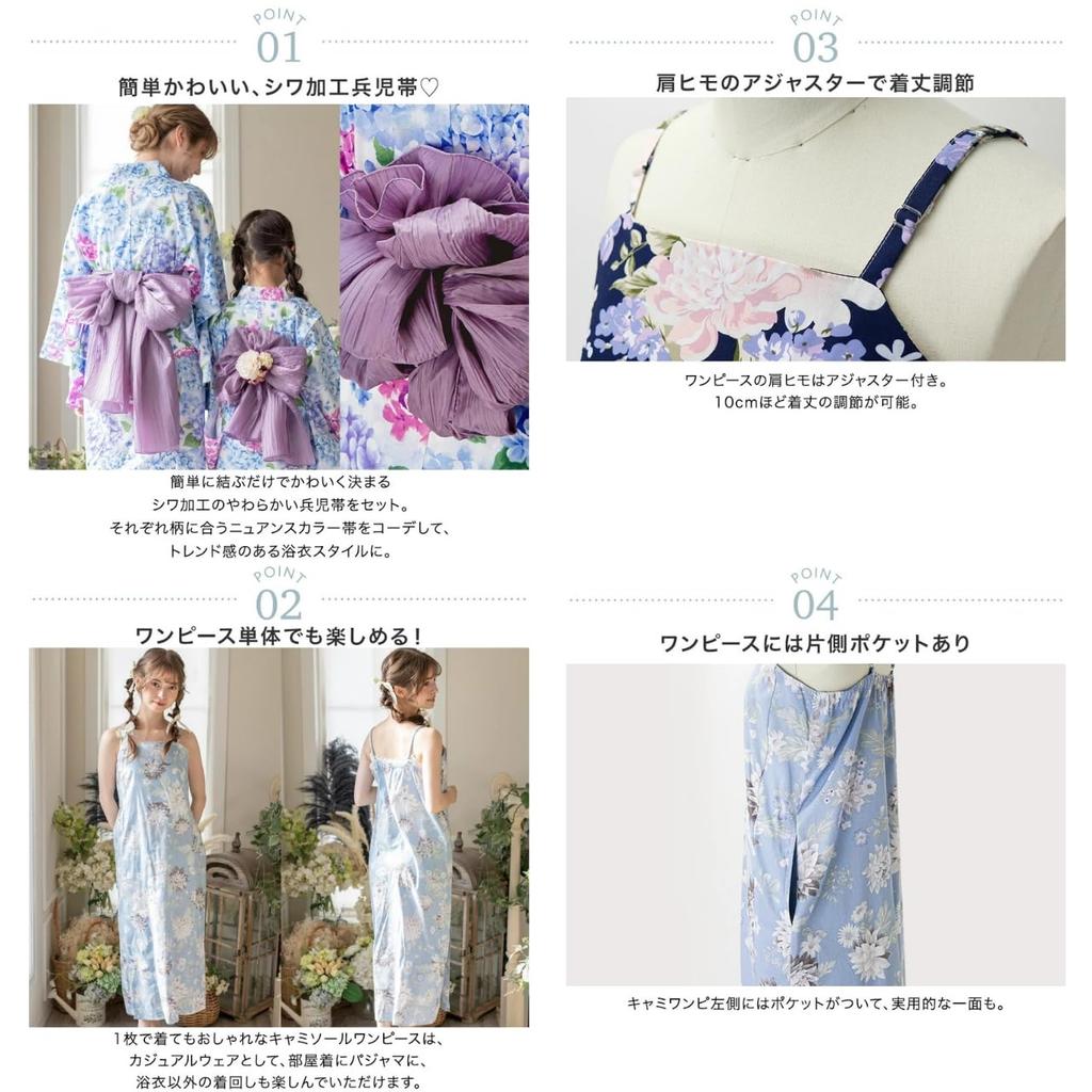 Catherine Cottage и Юката Один Размер Подходит Однотонная Гортензия TAK Женский Юношеский Комплект, Платье 2-в-1, Все, [13JJ]