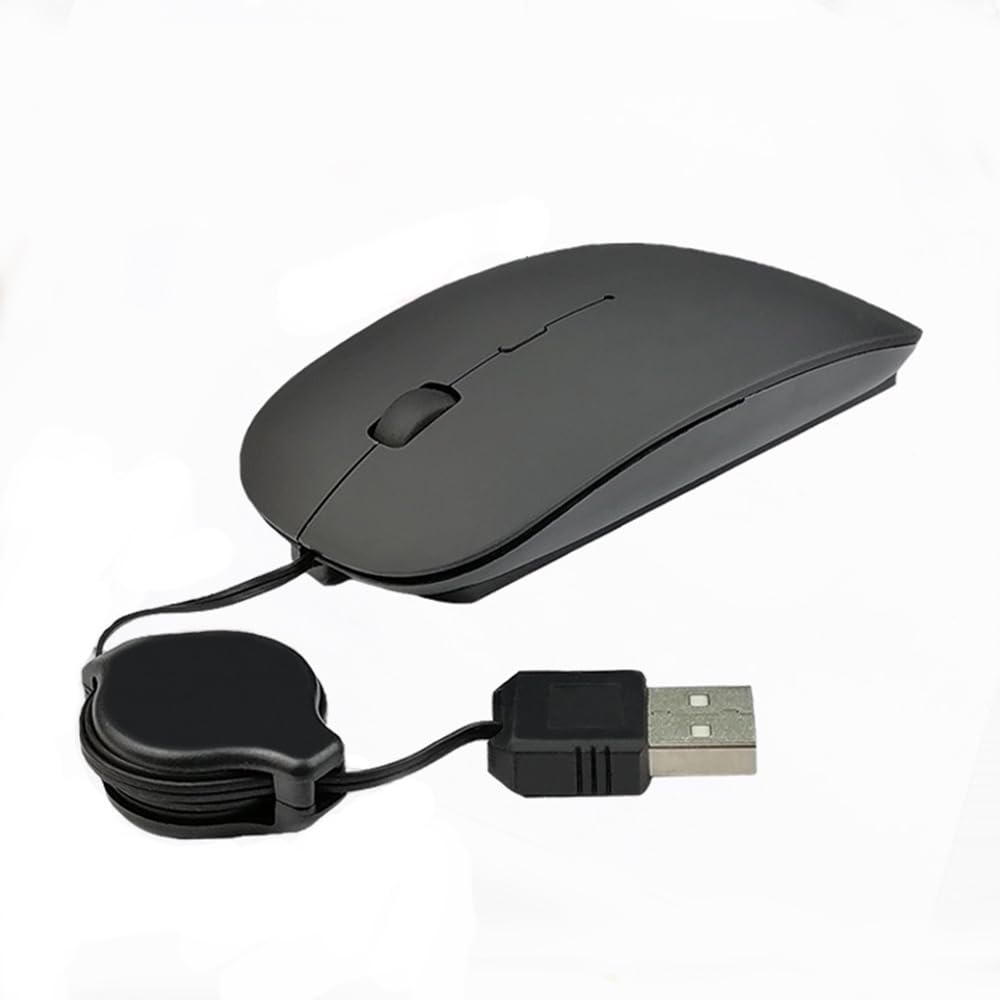 Проводная USB-мышь, Выдвижная, Мышь для ноутбука, Компактная, Тонкая, Оптическая, Тихая, Выдвижной кабель, Портативная, Для путешествий, Совместимая с ноутбуком, Черная