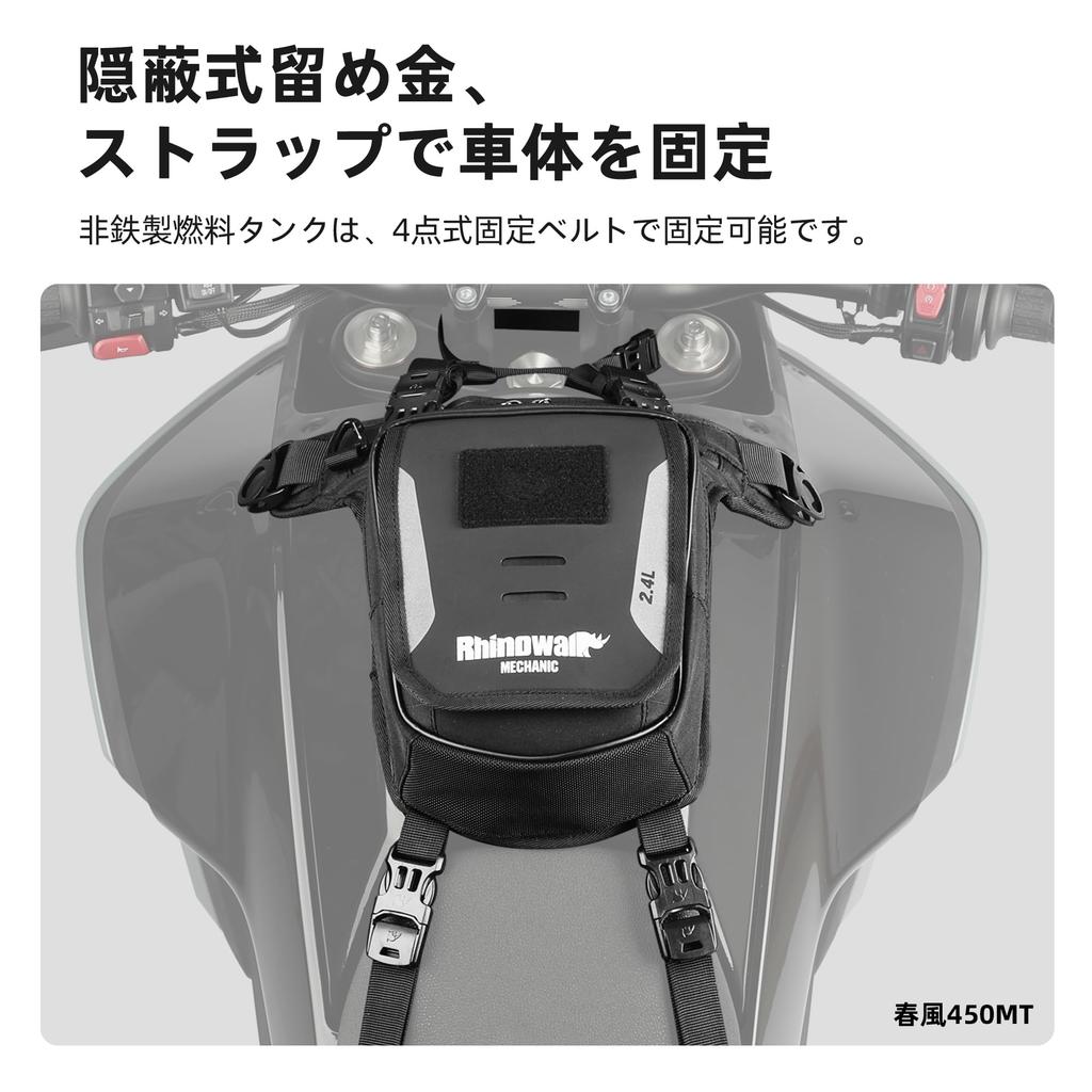 Magnetic Fixture: Suitable for motorcycles equipped with commercially available iron fuel tanks, it strongly adsorbs the fuel tank at four points on both the leg bag and the fuel tank bag.