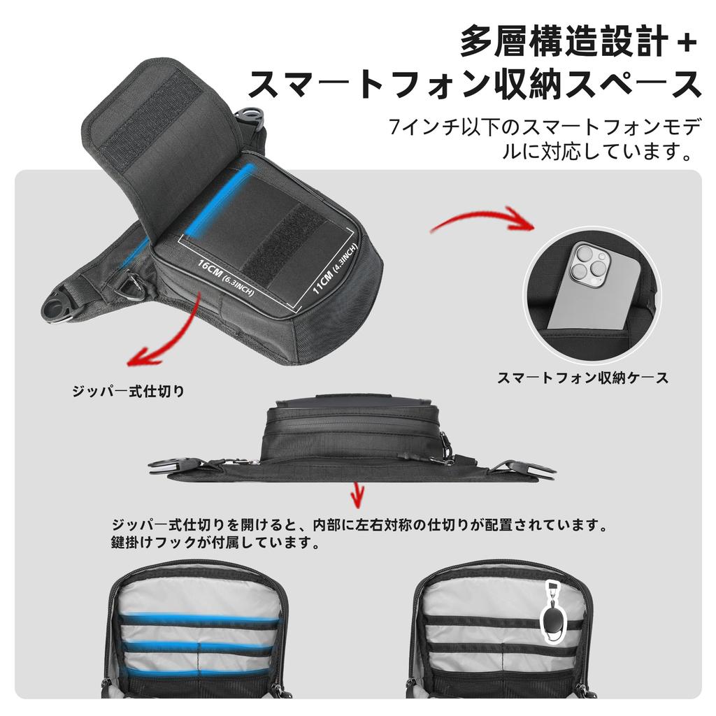 Ready-to-use multifunctional bag: The thigh bag can be used as a drop tank bag, dangling leg bag, waist bag, fun bag, sling bag, shoulder bag, or over-the-shoulder bag.