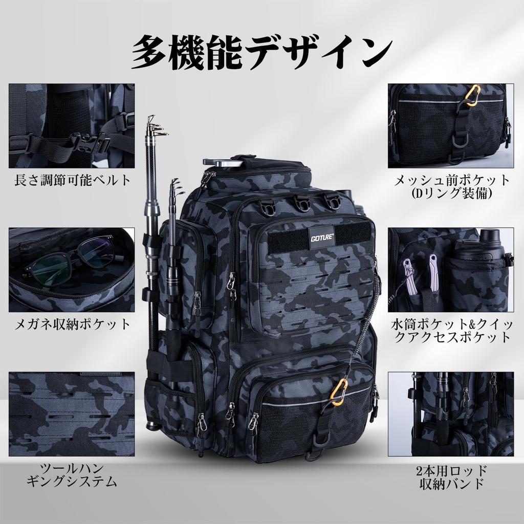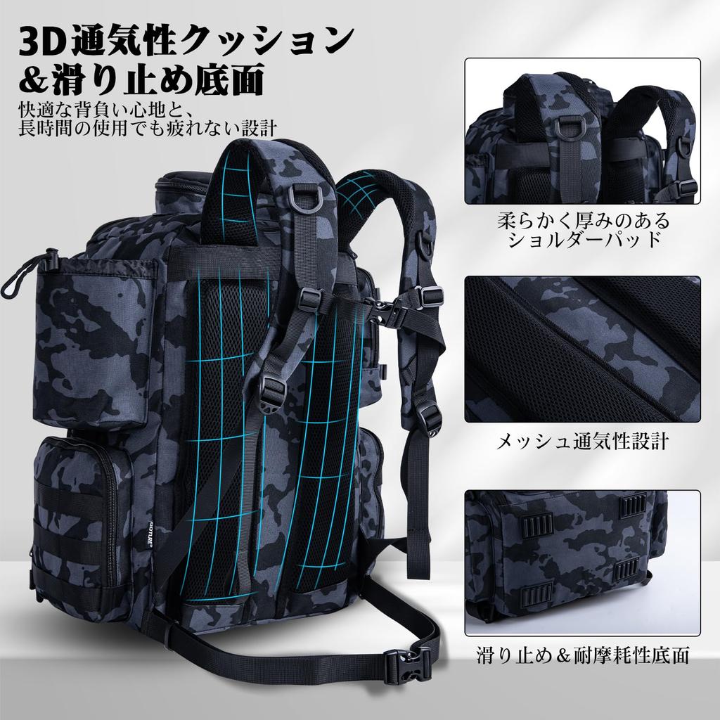 Большое пространство для хранения 45 л: Основное отделение вмещает до четырех коробок для приманок размера 3600. Оснащенный многофункциональными карманами и комплексной системой внешнего хранения, вы можете легко организовать и хранить мелкие предметы и даже получить доступ к своему рыболовному снаряжению, не открывая рюкзак.