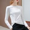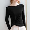 Medium-sleeved short-sleeved t-shirt women's spring and summer new women's clothing temperament one-word shoulder cotton t-shirt pleated waist top — купить товар онлайн с бесплатной доставкой по всему миру!
