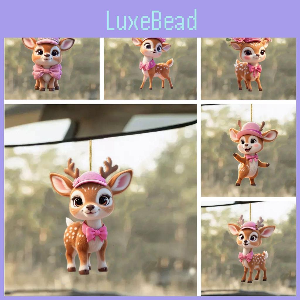 С мультяшным оленем розовая шляпа украшение-подвеска на зеркало заднего вида для детей украшение для автомобиля