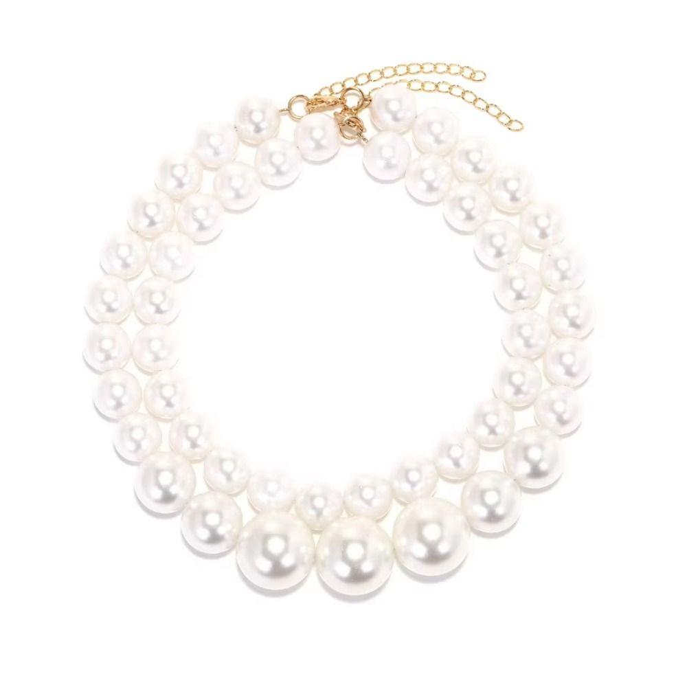 Luxury Elegant Imitation Pearl Necklace Double Layered Beaded Clavicle Chain Wedding Jewelry