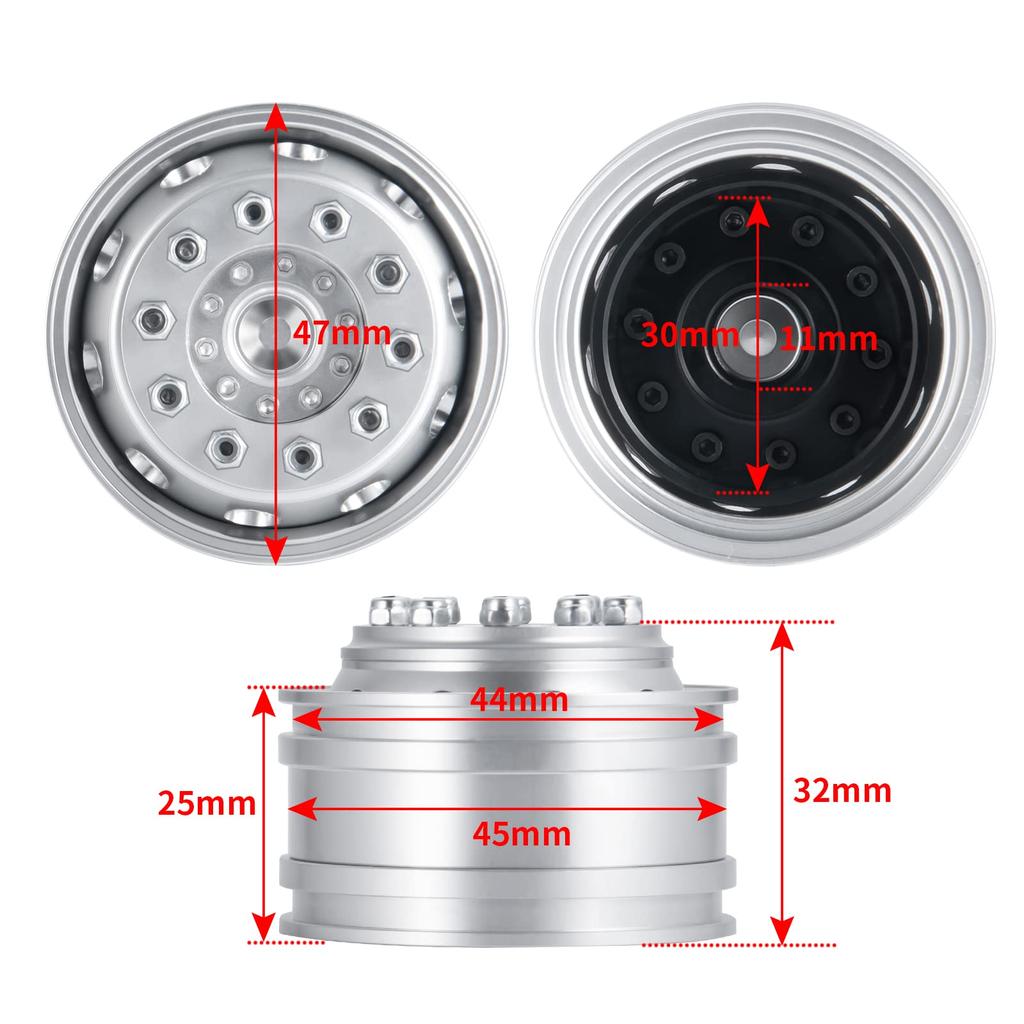 TRZX Aluminum Front Wheel Hub Rim Upgrade Parts for 1/14 Tamiya Trailer Tractor Truck RC Car (2 Pieces)