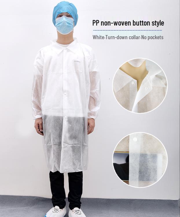 Одноразовый нетканый лабораторный и кухонный халат - Пыленепроницаемый, Утолщенный Белый