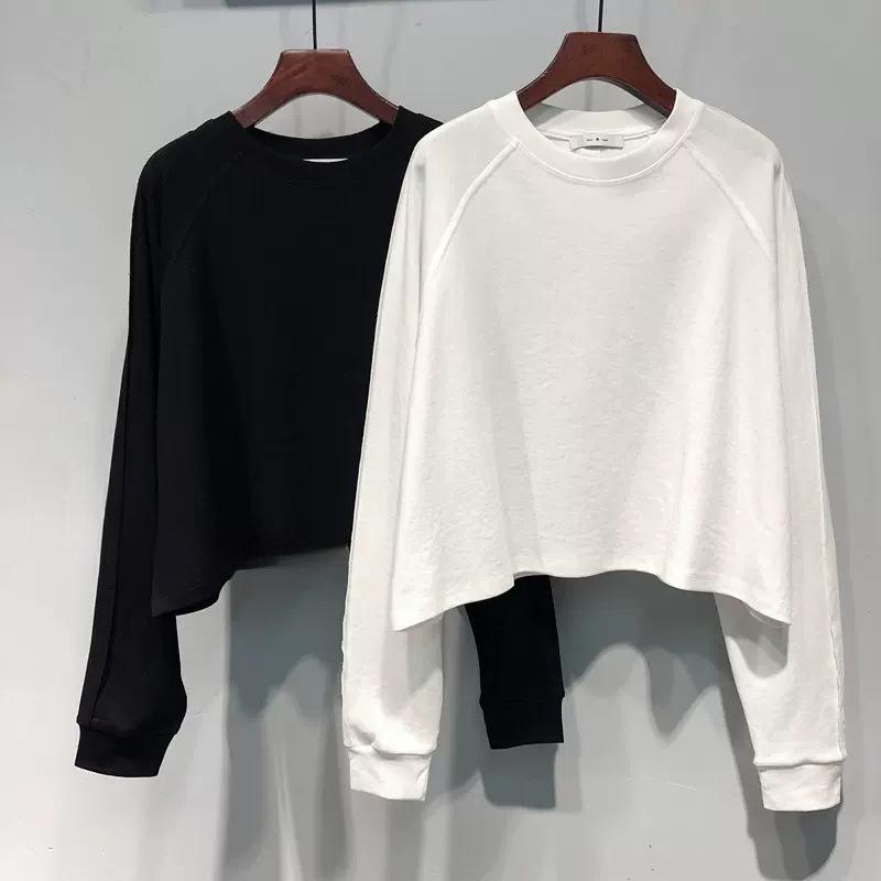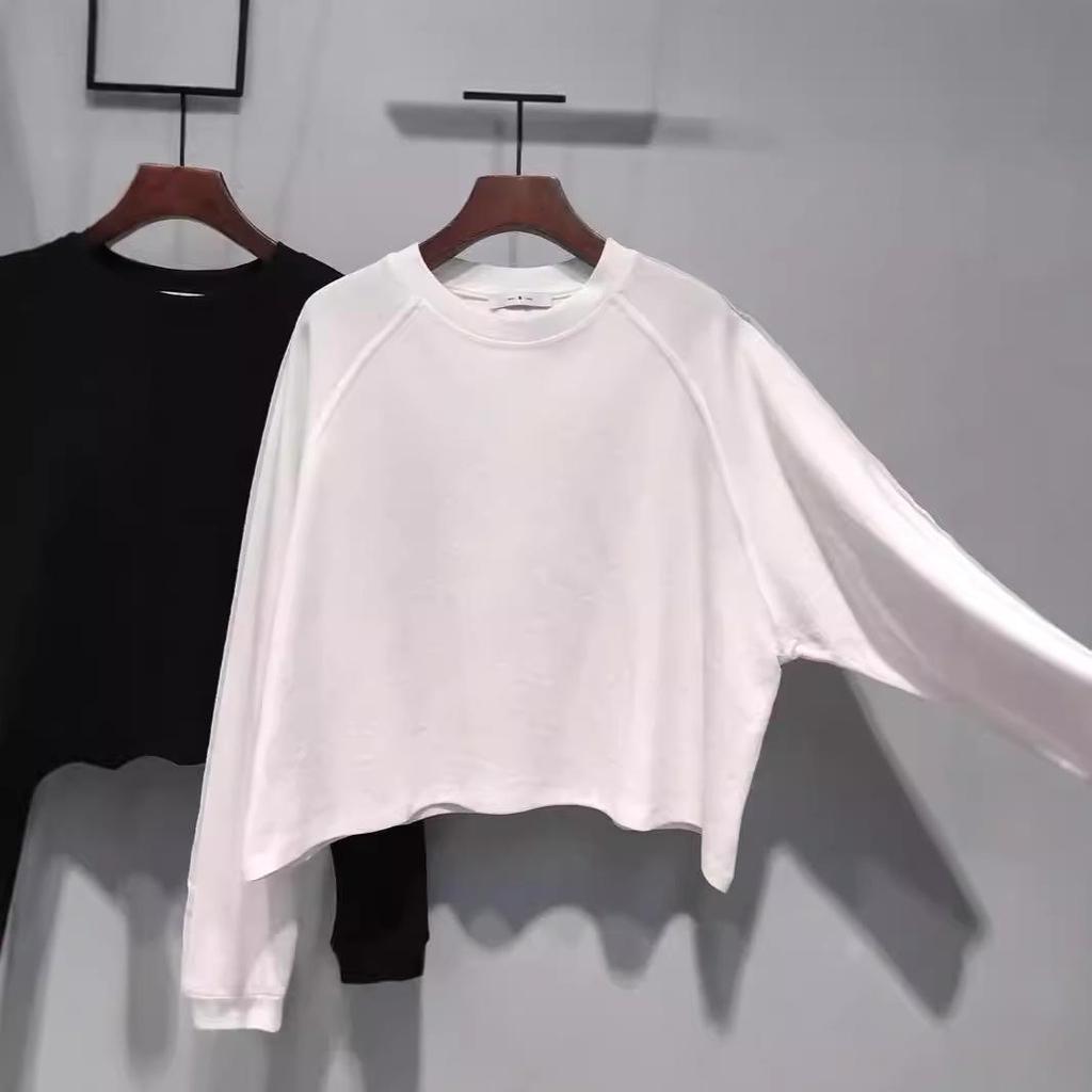 Весна 2025 Корейский стиль Круглый вырез Свободный Приталенный Чистый хлопок Футболка с длинным рукавом для женщин