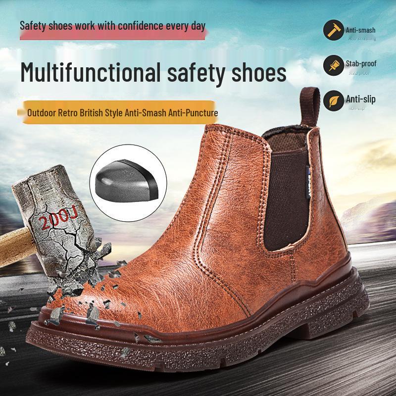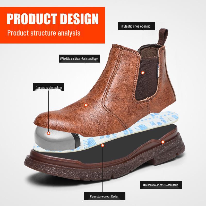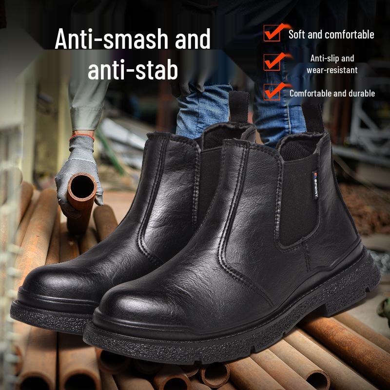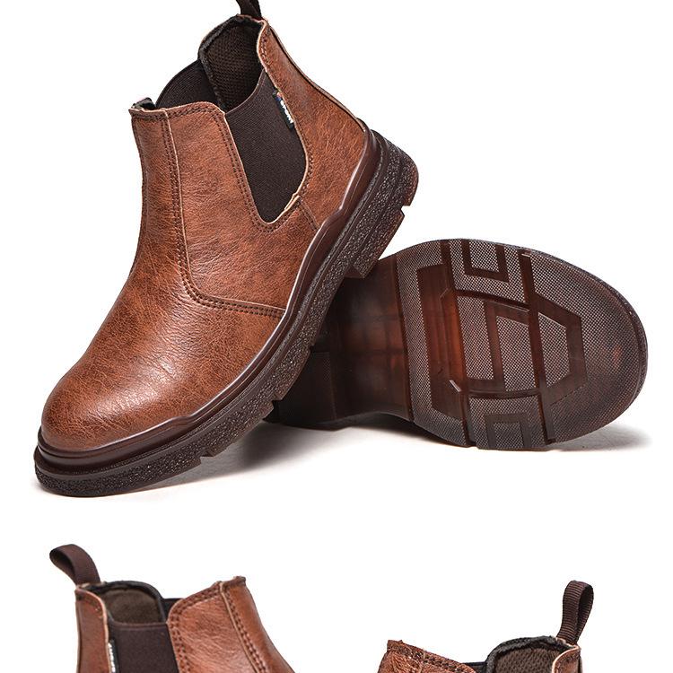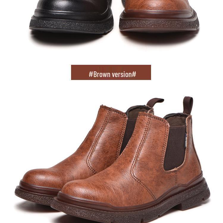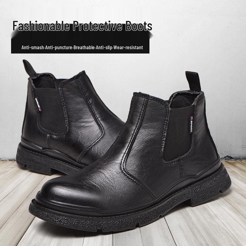 Мужская защитная обувь без шнуровки с композитным подноском: Ударопрочные, Устойчивые к проколам, Нескользящие, Износостойкие рабочие ботинки