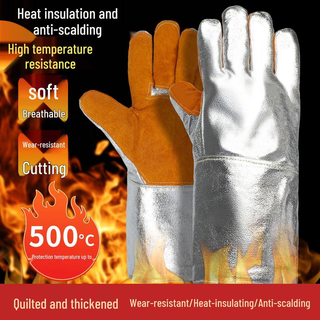 Термостойкие перчатки из алюминиевой фольги - Огнезащитные, Защищающие от ожогов, Прочные, Утолщенные промышленные пекарские перчатки для высоких температур (300°-500°C)