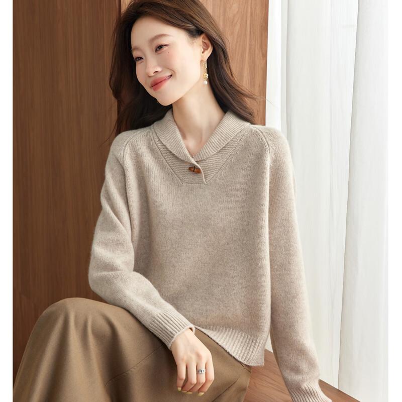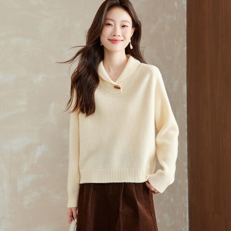 Женский свитер Srcr из 100% шерсти, свободного кроя, в стиле ретро, с отложным воротником