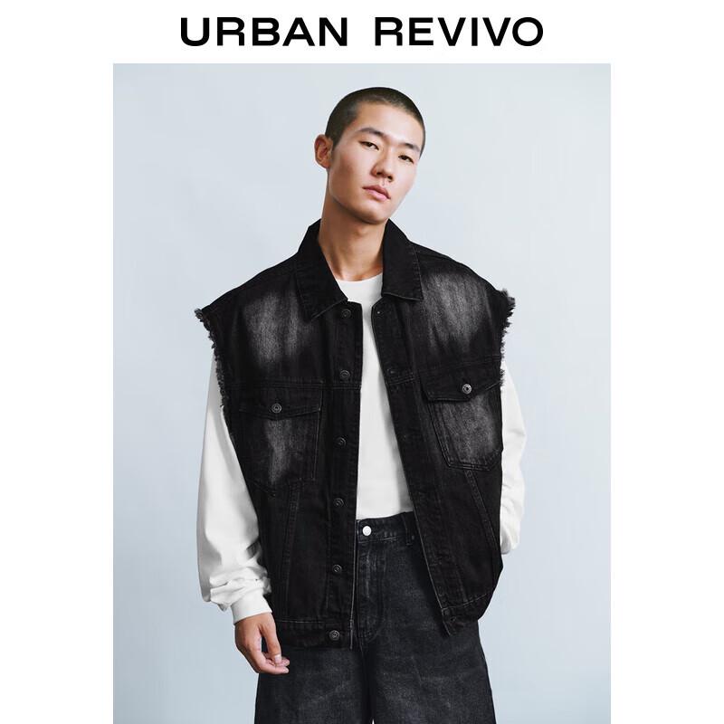 Мужская винтажная джинсовая куртка без рукавов с необработанным краем UR