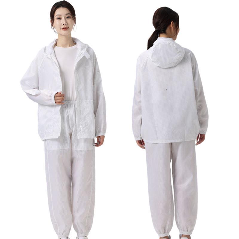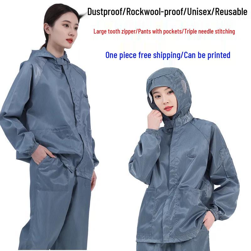 Мужской пылезащитный антистатический рабочий костюм с капюшоном для покраски распылением - Белый/Синий