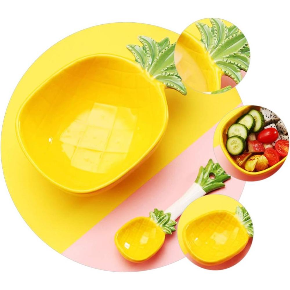 Салатники «Ананас» с ложкой, керамические глубокие сервировочные миски, набор сервировочных мисок для еды, салата, пасты, хлопьев для дома, ресторана