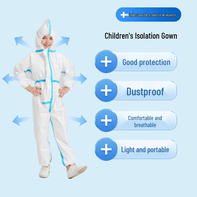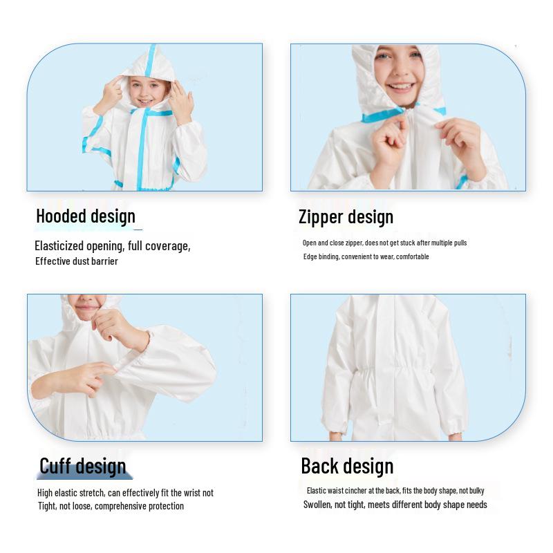 Детский одноразовый защитный комбинезон - Водонепроницаемый, Маслостойкий, Пыленепроницаемый, Нетканый материал, Белый изолирующий костюм на все тело