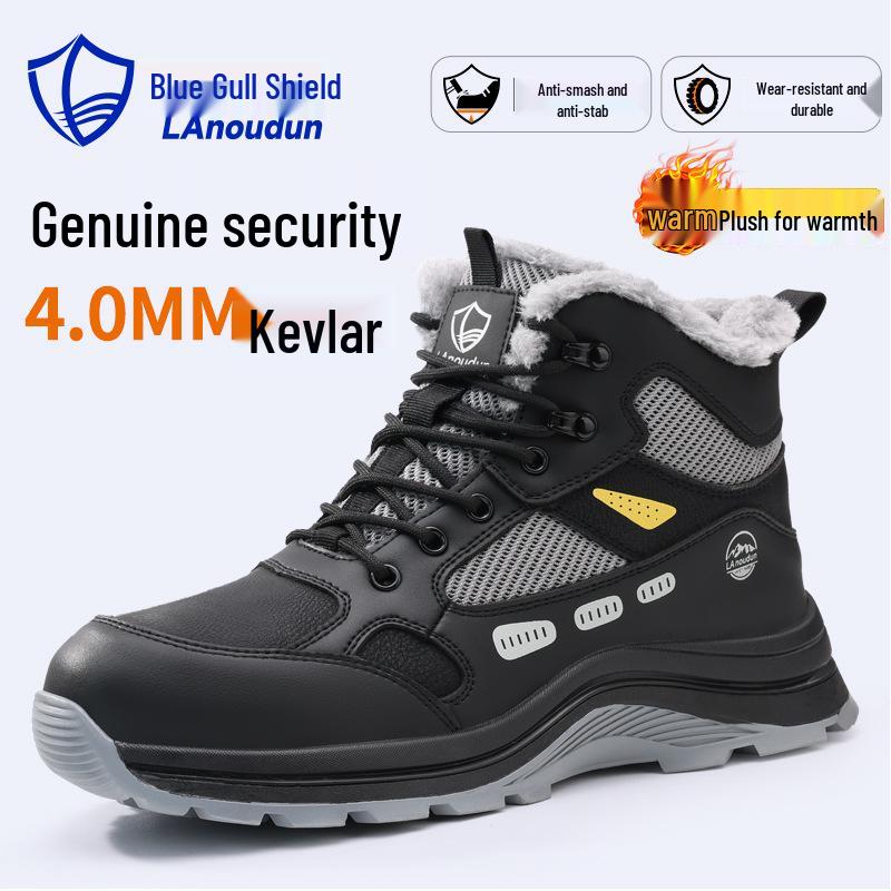 Мужские зимние защитные рабочие ботинки - Blue Gull Shield, защита от ударов, защита от проколов, износостойкие, с плюшевой подкладкой для тепла.
