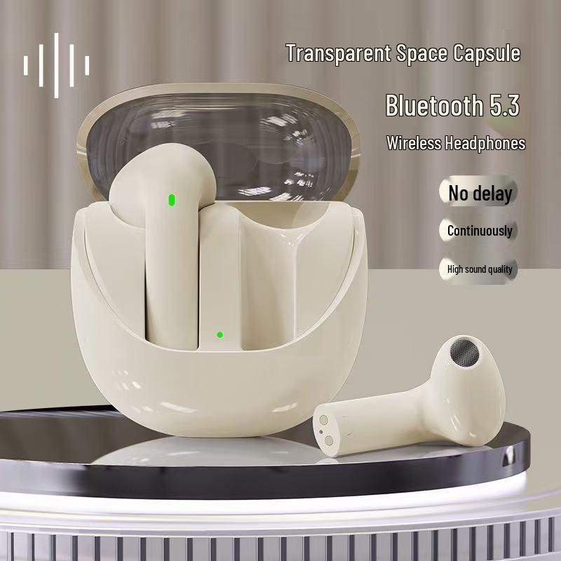Высококачественные прозрачные авиационные наушники Bluetooth 5.3 с 8-часовой батареей для спорта и игр, новые, белые.