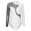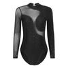 Женский сверкающий комбинезон с цветными блоками, прозрачной сетчатой вставкой, вырезом на спине, длинными рукавами и стразами — купить товар онлайн с бесплатной доставкой по всему миру!