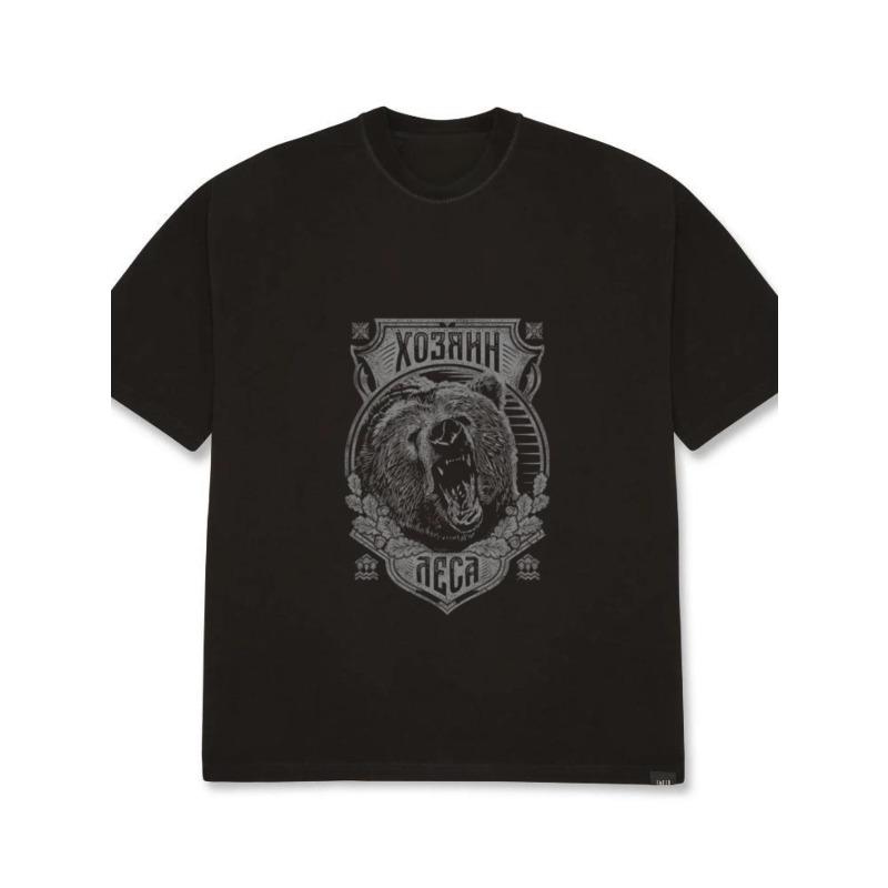 Мужская футболка оверсайз с графическим принтом черного медведя и русским текстом, уличная одежда, повседневная одежда
