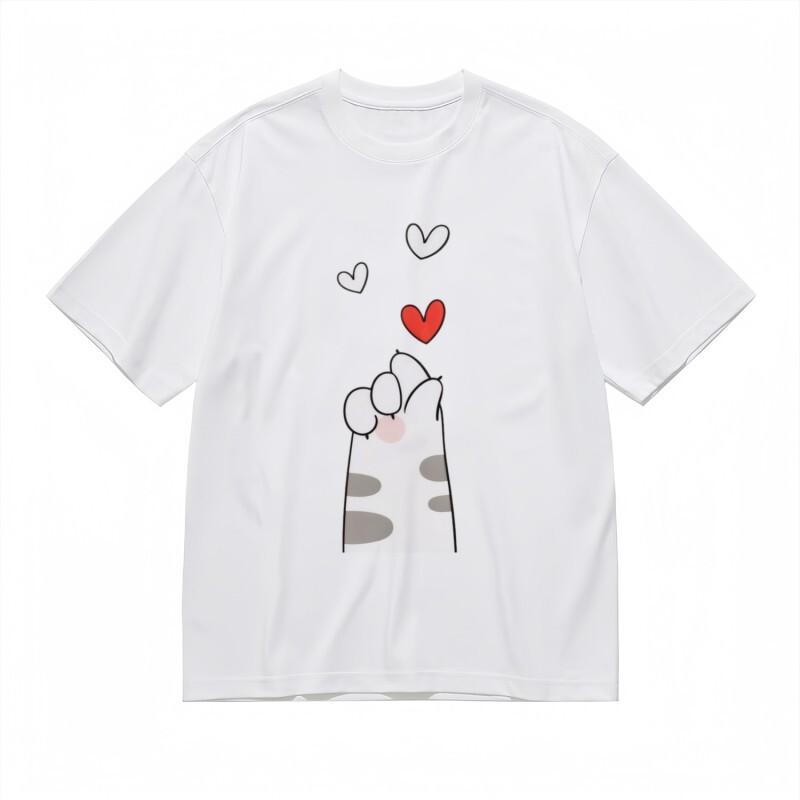 Women's All-Season Breathable Classic T-Shirt Whiskered Paw Heart Design Tee