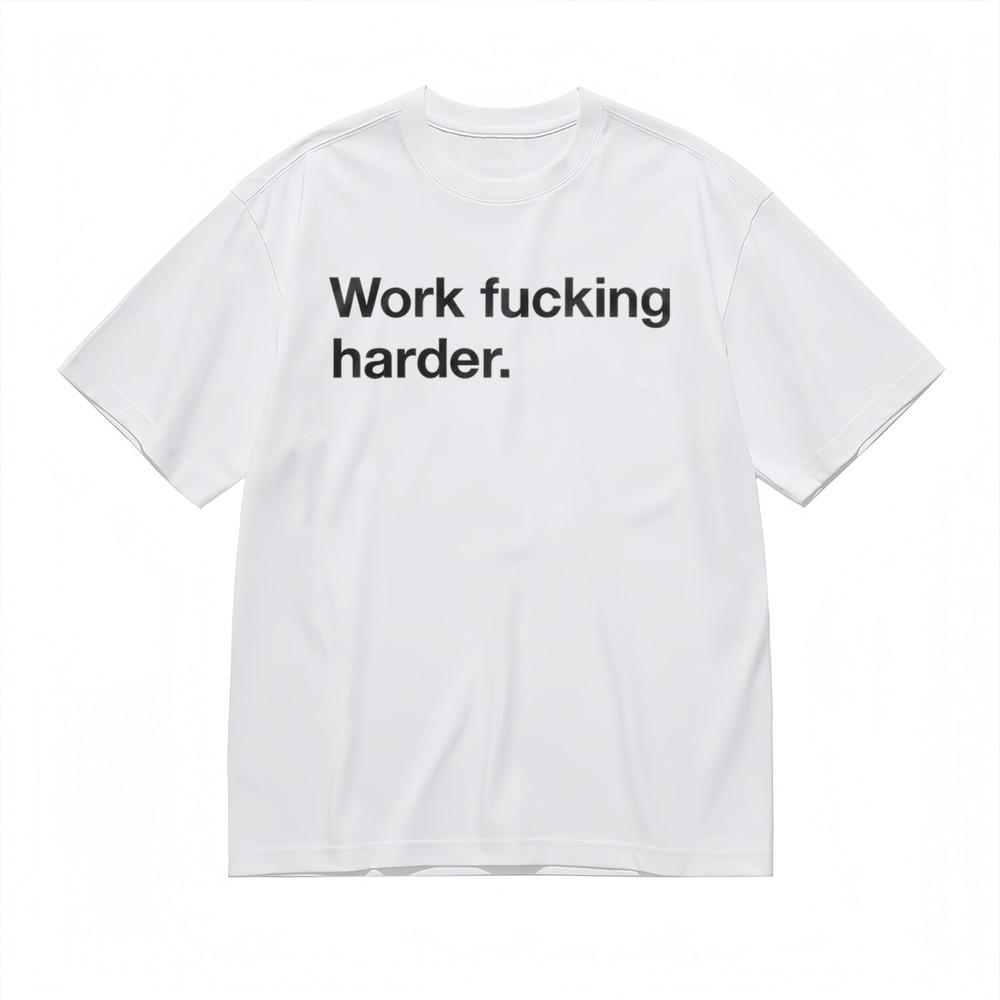 Women's T-shirt With Work Hustle Harder Graphic Unisex White 100% Cotton Top USA