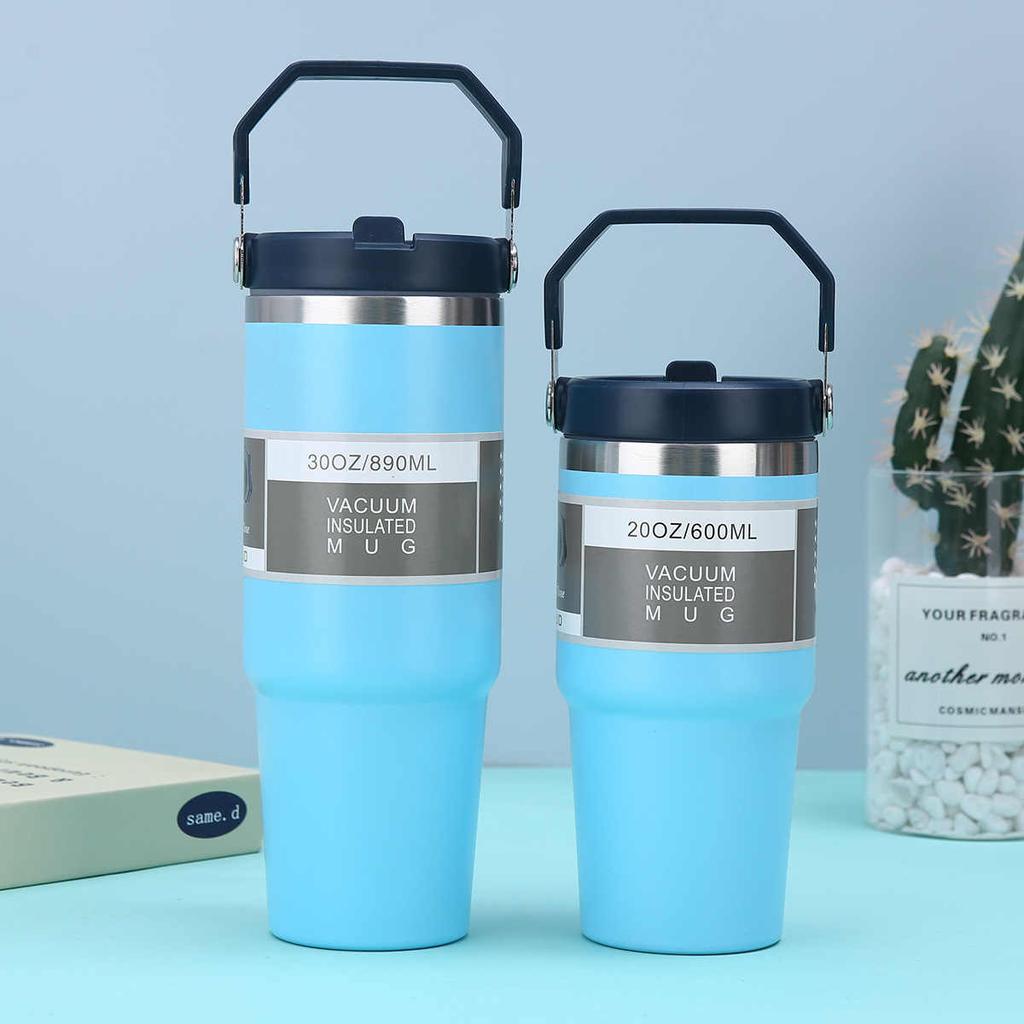 Кружка-термос из нержавеющей стали 600/890 мл с трубочкой, сохраняет холод и тепло, термокружка, автомобильная изолированная фляга, стакан для воды для улицы