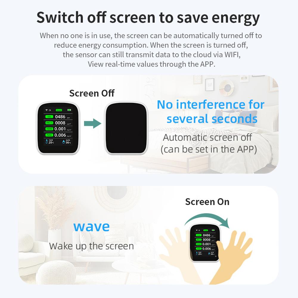 Tuya Wifi Измеритель CO2 Цифровой Тестер Температуры и Влажности Детектор Углекислого Газа TVOC HCHO PM2.5 PM1.0 PM10 Монитор Качества Воздуха