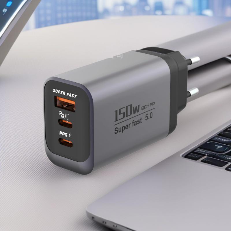 Многопортовое быстрое зарядное устройство 150 Вт с 1 портом USB-A + 2 портами USB-C PD - Компактный дорожный адаптер