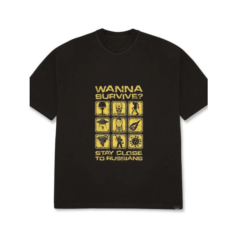 Мужская черная футболка Хочешь выжить Держись рядом с русскими Графический принт Повседневная одежда